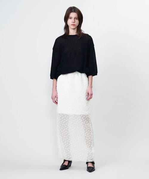 シアーな素材感はヘルシーな印象を持ち、凹凸感あるドット柄を施したデザインは存在感のある一枚に仕上がっています。