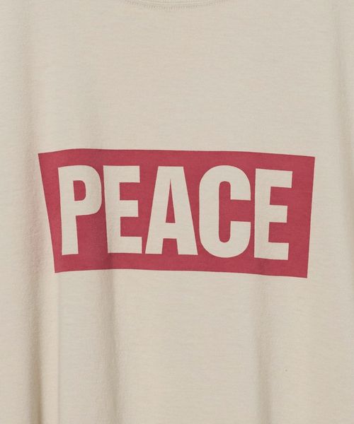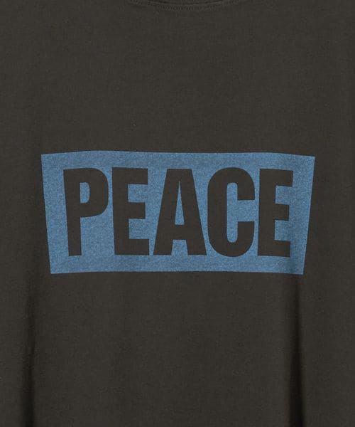 「PEACE」のボックスロゴデザインが目を引くTシャツ。