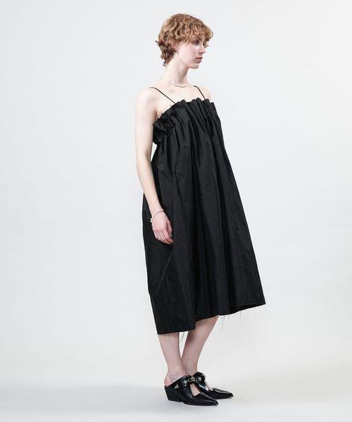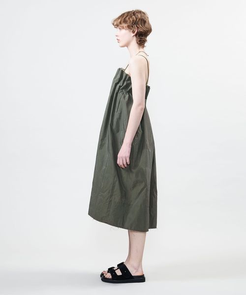 裏側の両脇にストラップをつけており、ベアトップ風のワンピースとしてもアレンジできる2WAYデザインです。