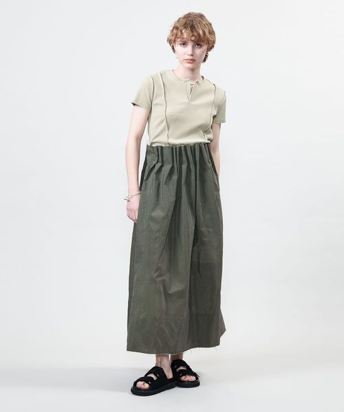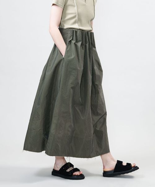 スカートとワンピースで着用いただける2WAYデザインのタックスカート。