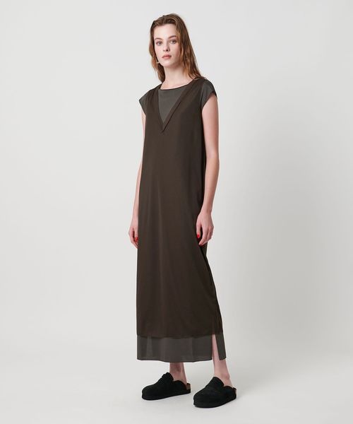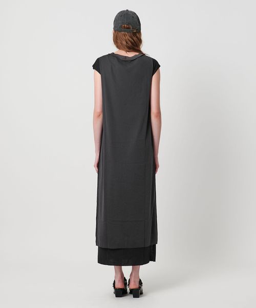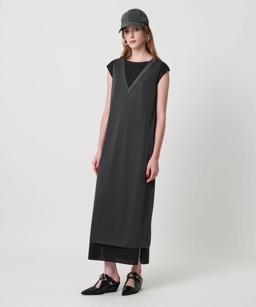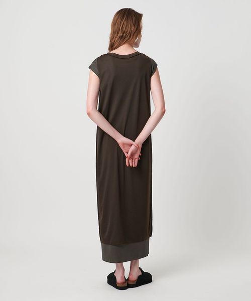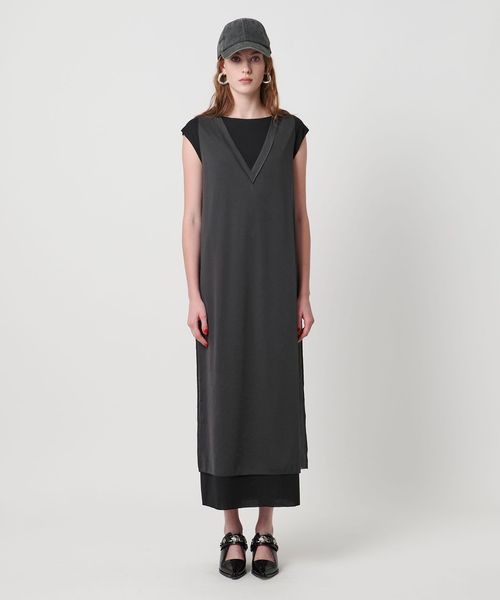 一枚で様になる異素材コンビのレイヤードデザインが特徴のカットソーワンピース。