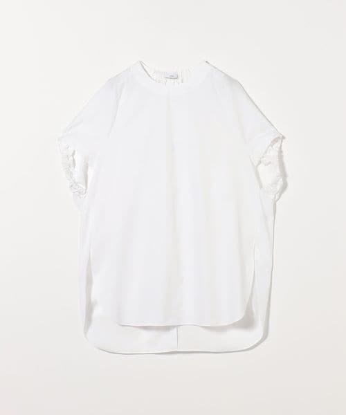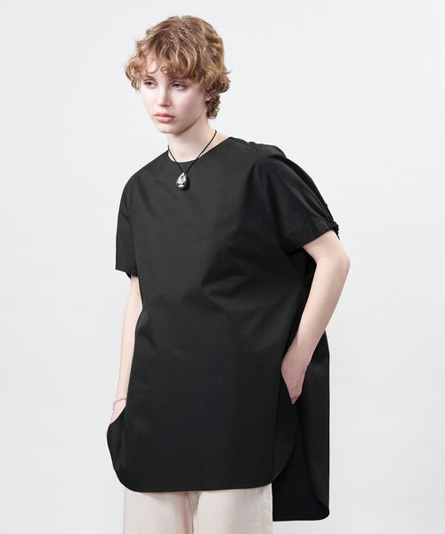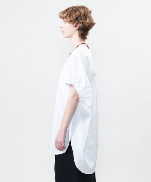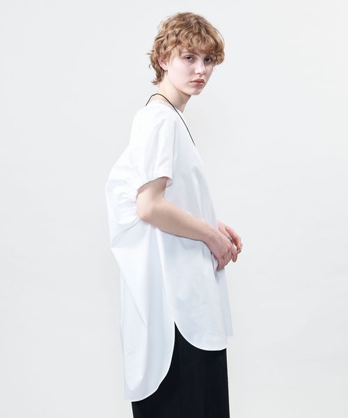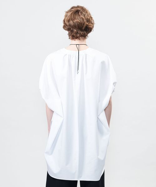 後ろの襟と袖にギャザーを施したビックシルエットのブラウス。