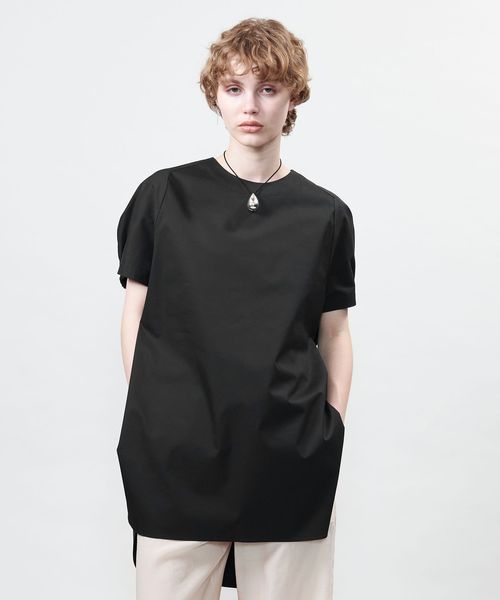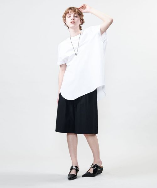 前後差のある着丈でヒップが隠れるトップスはスリムパンツとも好相性な一枚です。