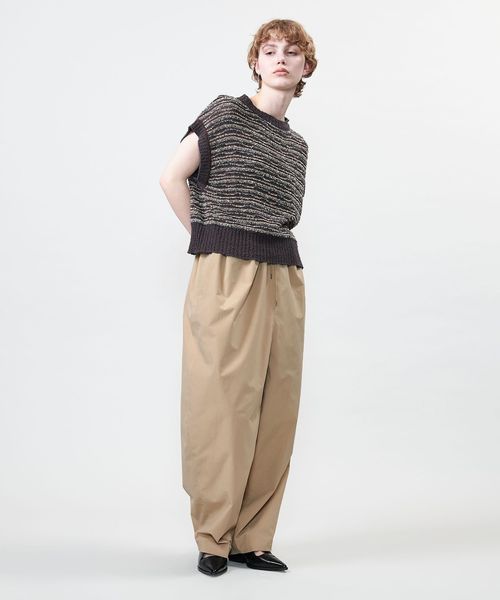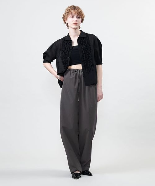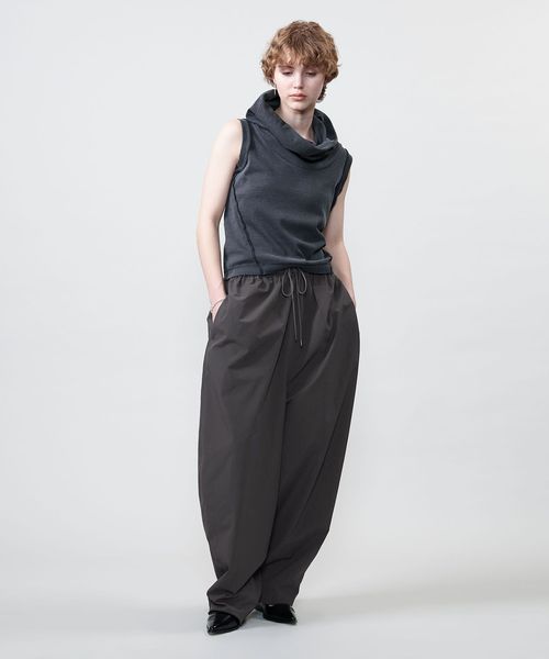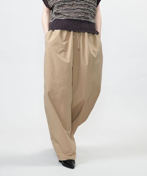ウエストのギャザーとボリュームシルエットが存在感のあるイージーパンツ。