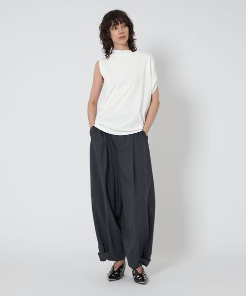 ストレートパンツ、タイトスカートなどシンプルなボトムとあわせるとデザインが引き立ちます。