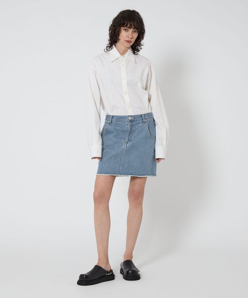裾の裁ち切り仕様がカジュアルなデニムミニスカート。