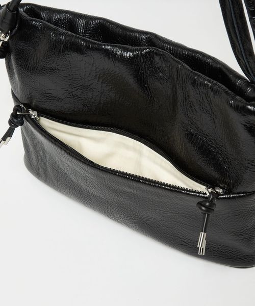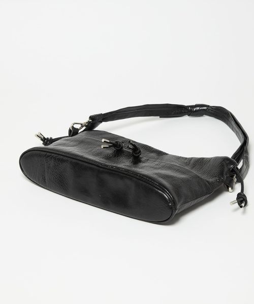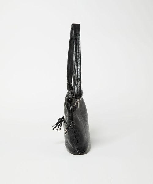 筒状の革をラフに結んだようなデザインのショルダーベルトも付属しているのでショルダーバッグとしてもお使いいただけます。