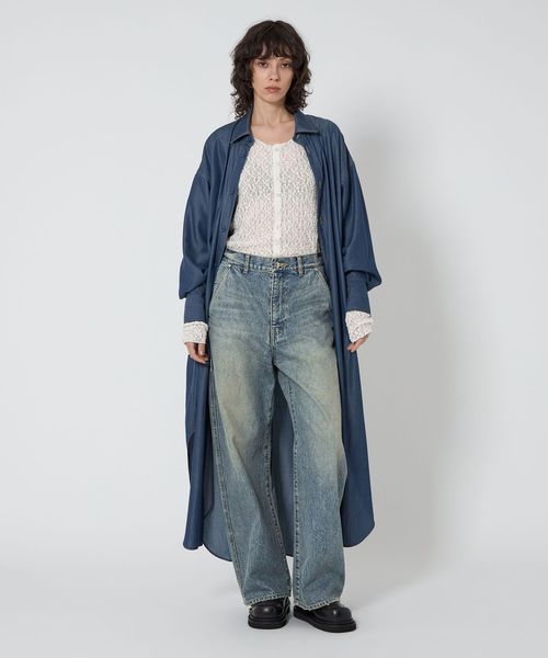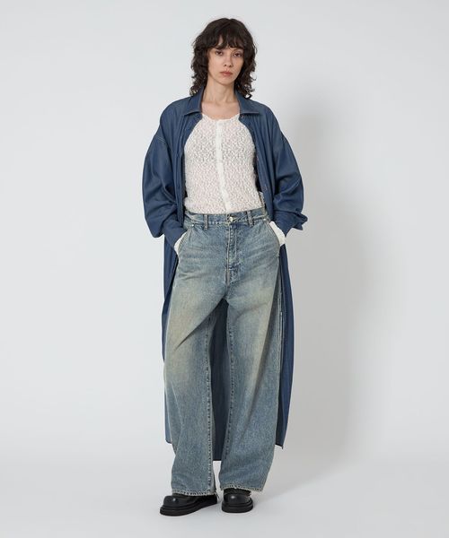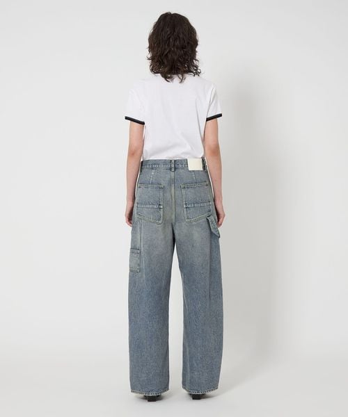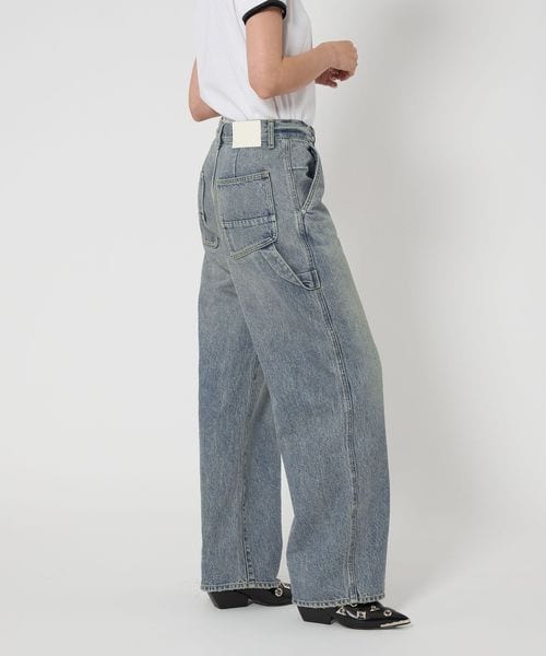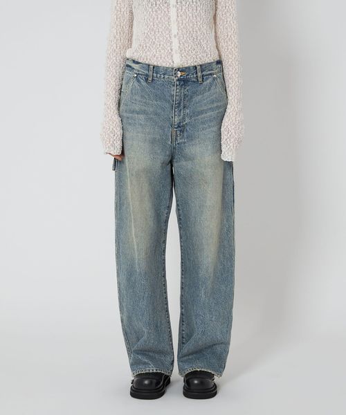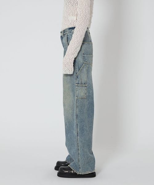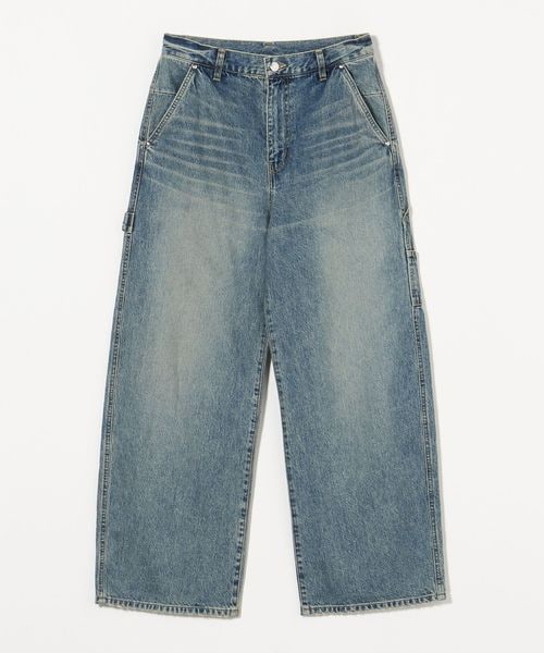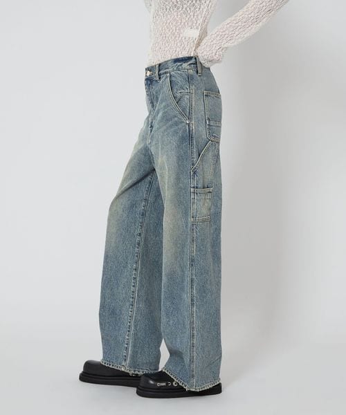 ビンテージライクな色落ち加工を施したペインター型のワークテイストなワイドデニムパンツ。