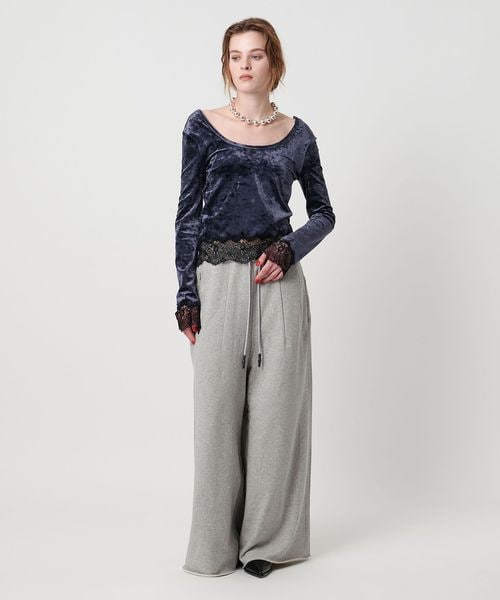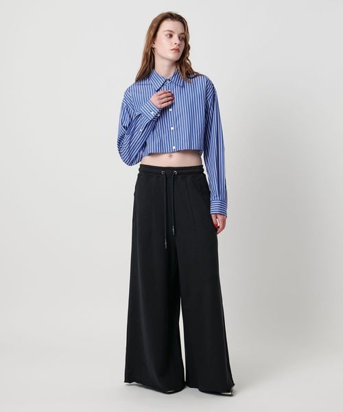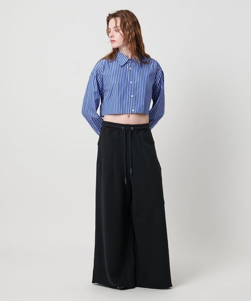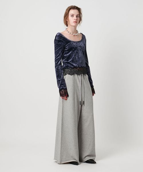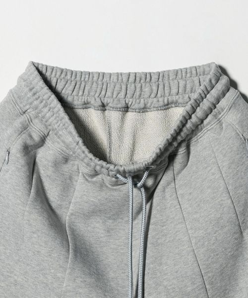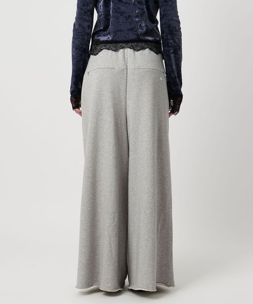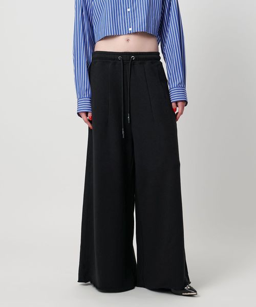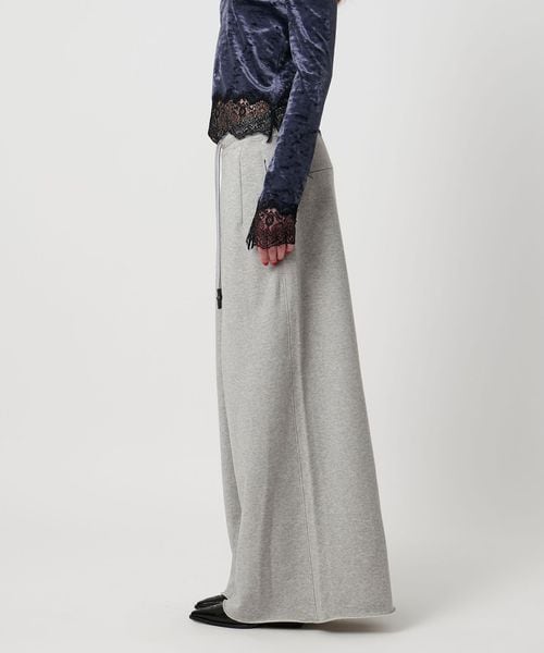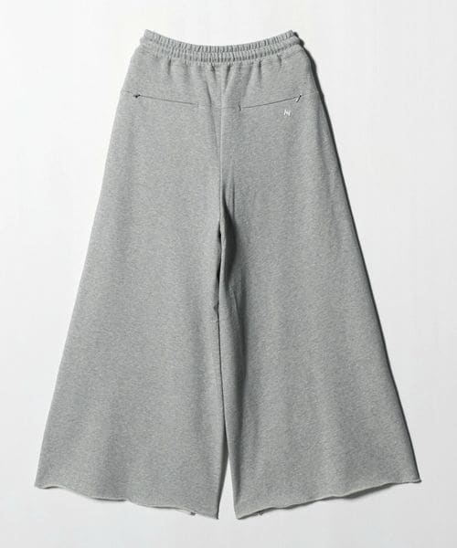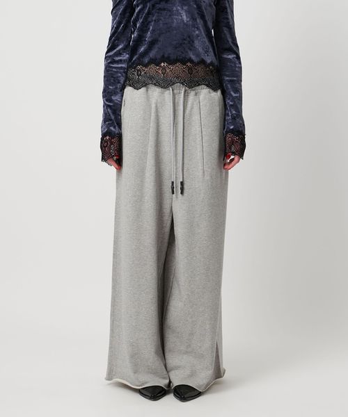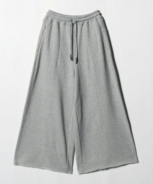 わたり幅のあるワイドシルエットをウエストでキュッと絞ったデザインが新鮮なスウェットパンツ。
