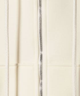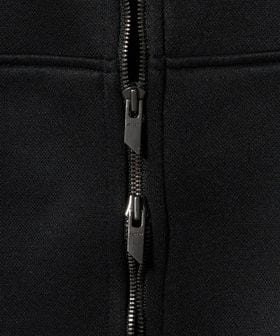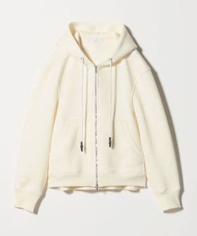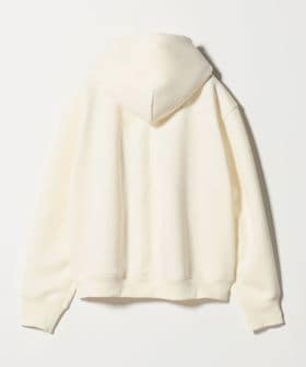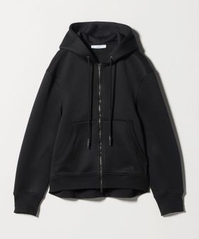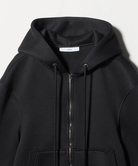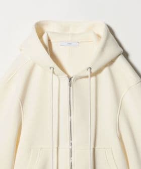 前後で着丈差をつけたり、後ろ身頃に膨らみがでるように袖つけなどにこだわった独特なシルエットのジップパーカー。