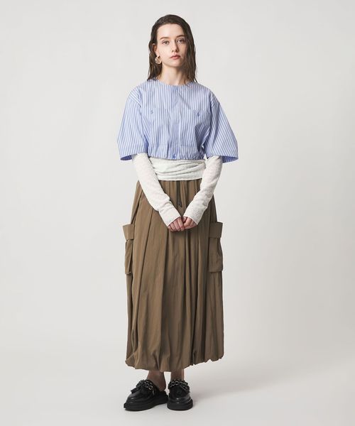 ショート丈トップスやニットにあわせたレイヤードスタイルもおすすめです。