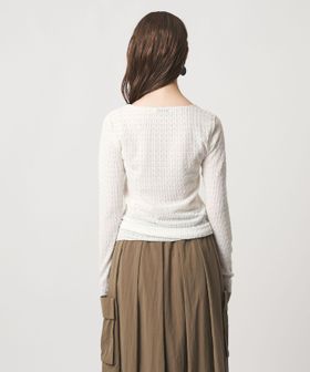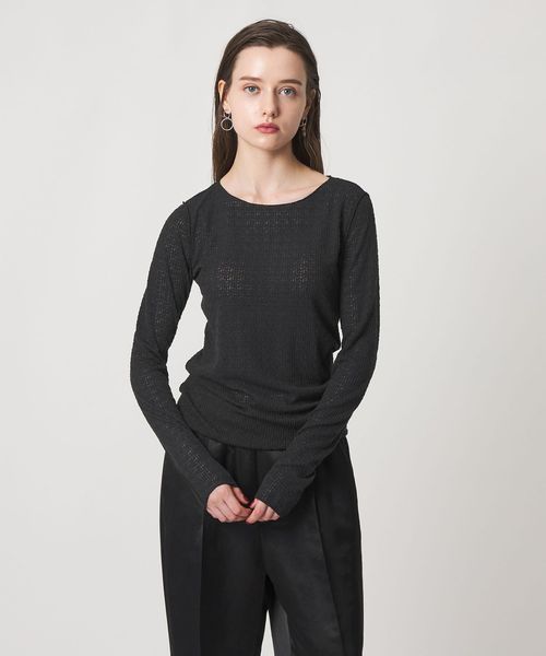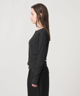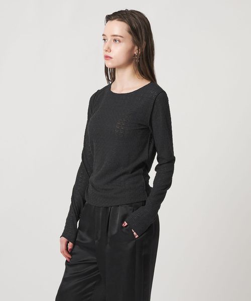シンプルながらも縫い代をすべて表に出してややカジュアルな印象に仕上げたシアー感のあるカットソー。