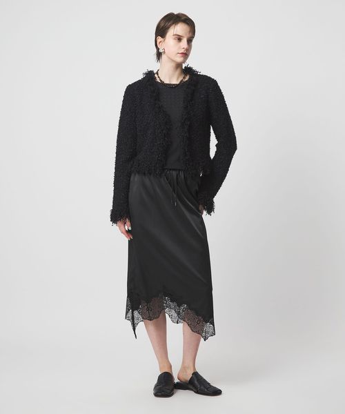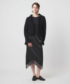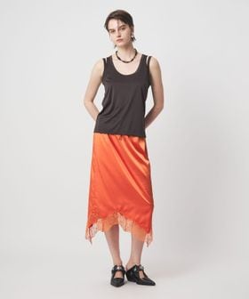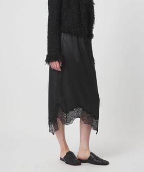 裾にレースをあしらったイレギュラーヘムのイージースカート。