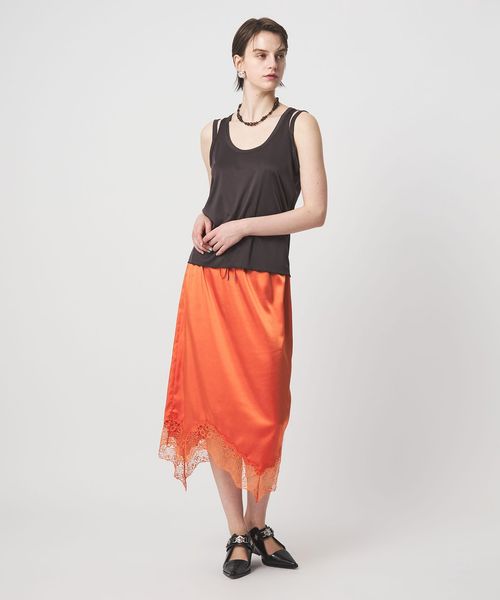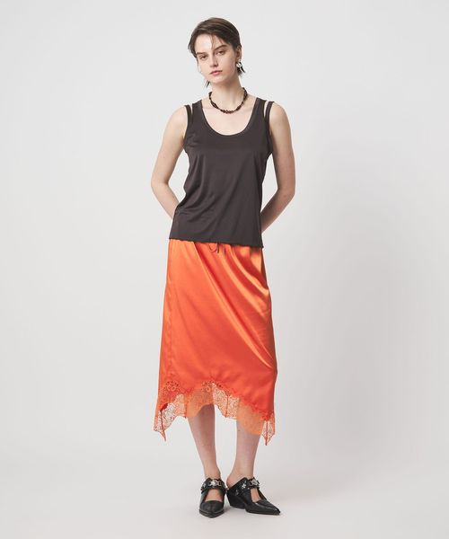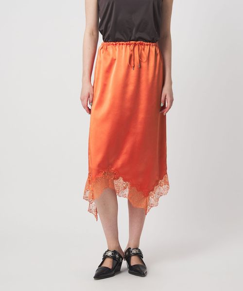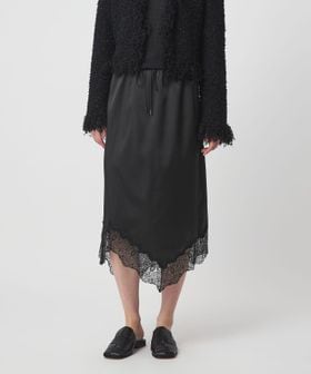 レースの異素材コンビデザインが華やかなサテンイージースカート。