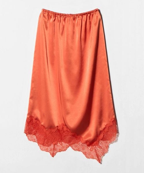 裾にレースをあしらったイレギュラーヘムのイージースカート。