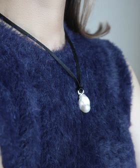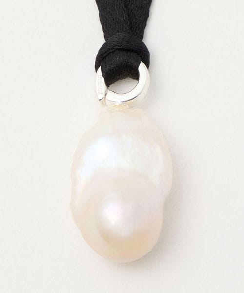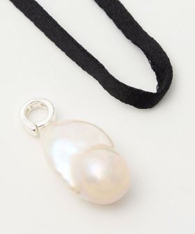 艶のあるフラットなシルクコードに、バロックパールをあわせたチョーカー。