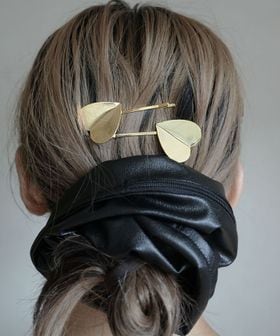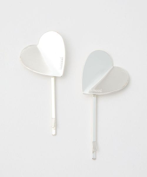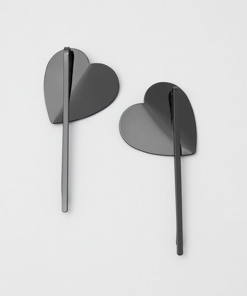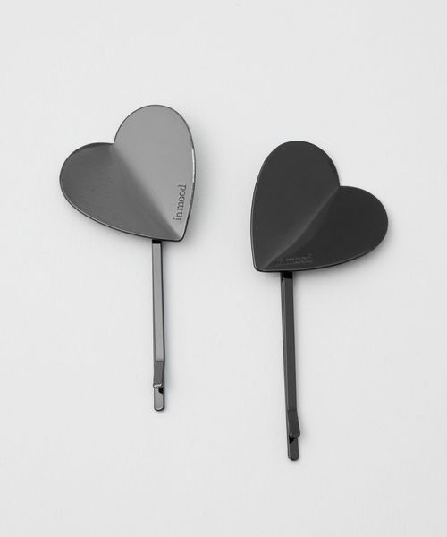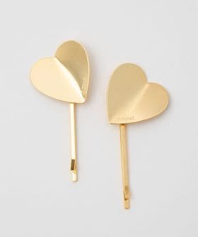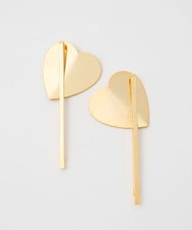 ミニマルなハートモチーフを使用した2個セットのメタルヘアピン。