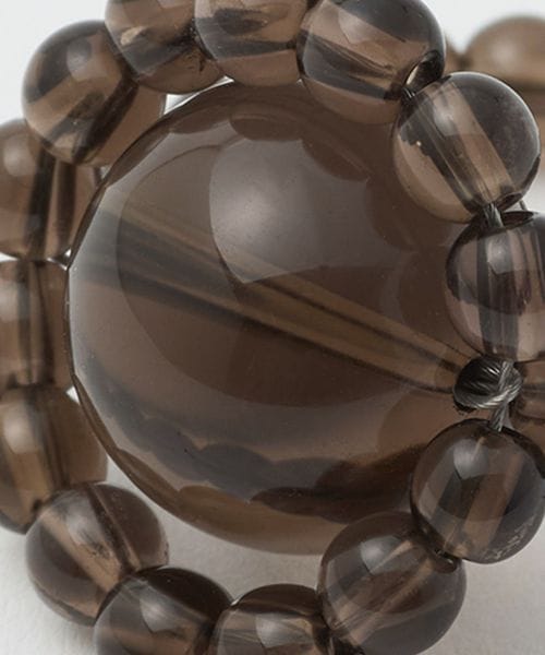 スモーキークォーツを一粒ずつていねいに編み、遊び心のあるフラワーデザインに仕上げました。
