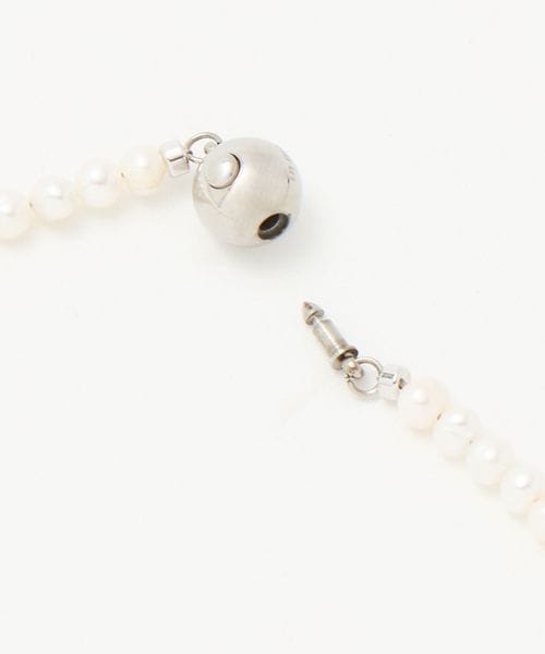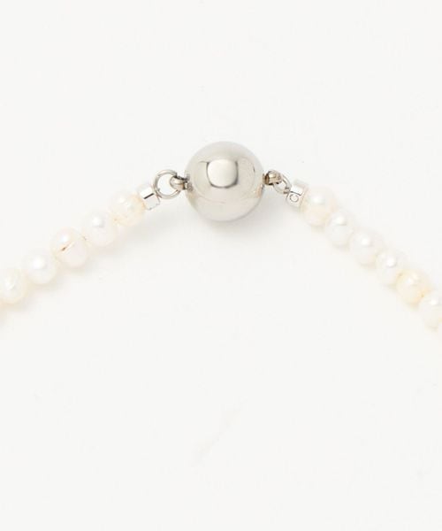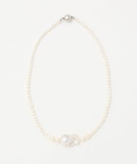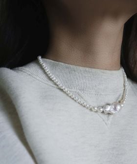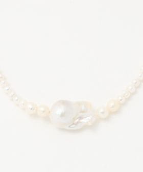 左右には小粒のパールを連ね、バロック淡水パールを中心に配したネックレス。
