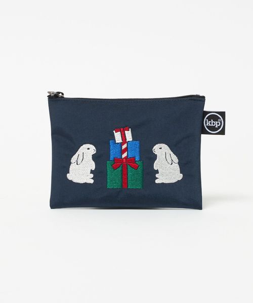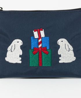 プレゼントとうさぎ柄をあしらった愛らしいポーチ。