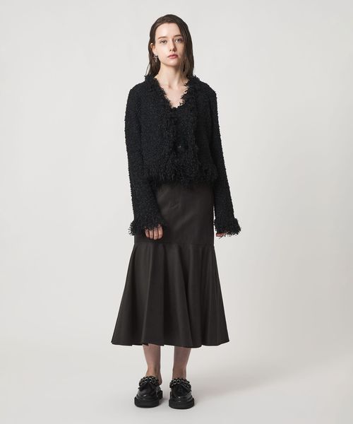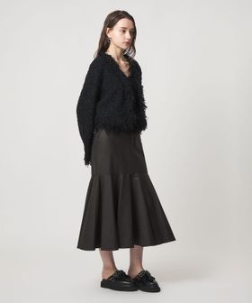 ショート丈トップスをあわせるとスカートのシルエットが引き立ちます。