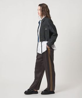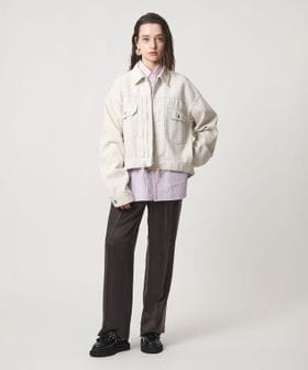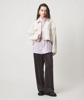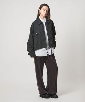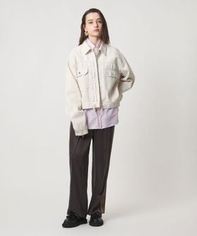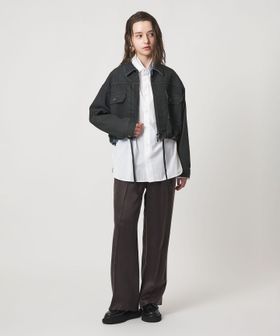 すっきりとした着丈のジャケットにはボリュームシルエットのボトムあわせがおすすめです。
