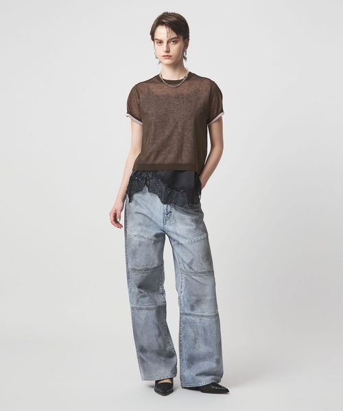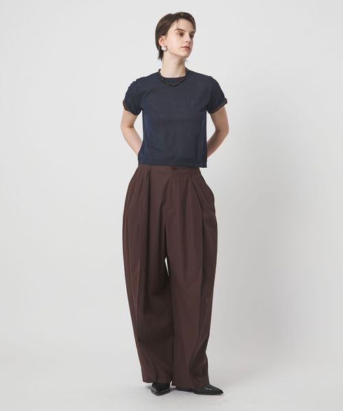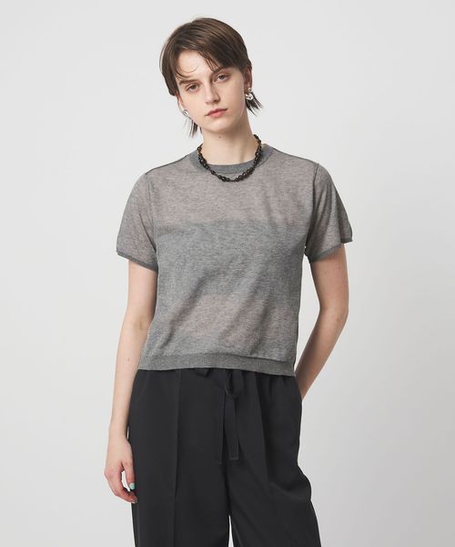 ミニマルなショートスリーブニットは様々なボトムと好相性なアイテム。
