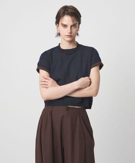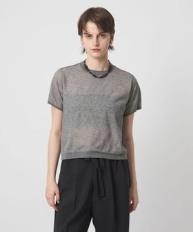 繊細な糸を2重に編み上げたリバーシブルで着用できるクルーネックのショートスリーブニット。