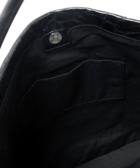 独特のシワ感のあるレザーが特徴のトートバッグ。
