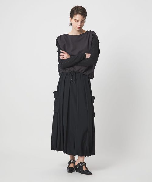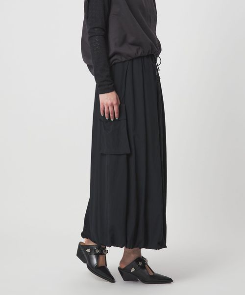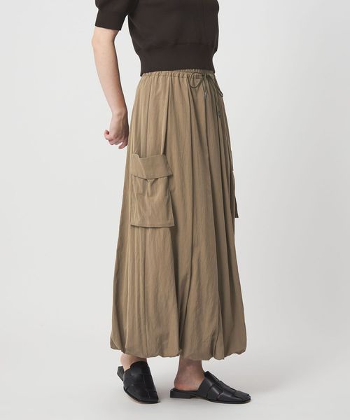 バルーンシルエットのイージースカートにカーゴパンツのような大きなポケットをあしらいました。