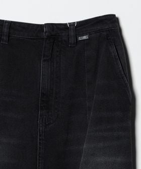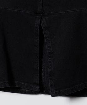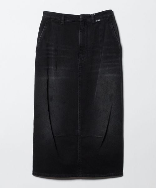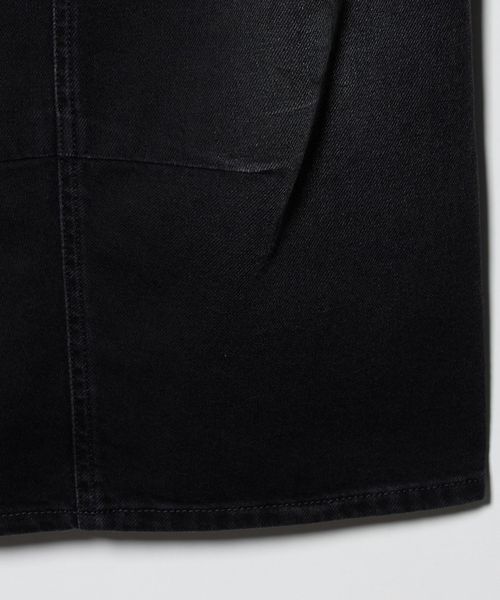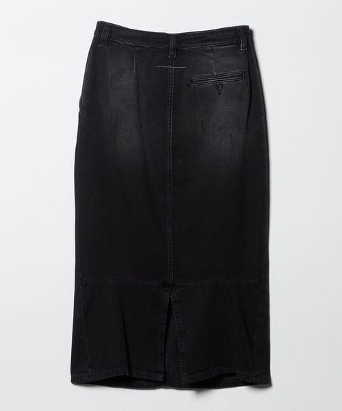 フロントの膝上にダーツを施したデザインのデニムスカート。