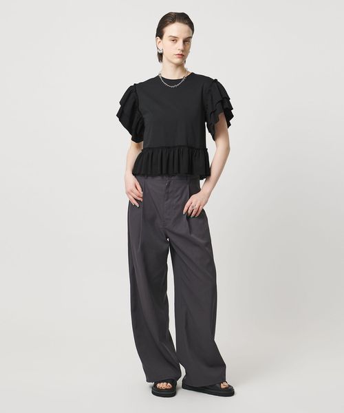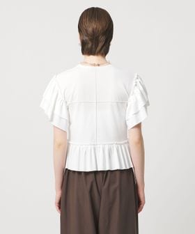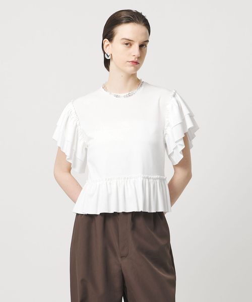 ミニマルなボディにカットオフしたフライスのフリルをあしらったクルーネックカットソー。