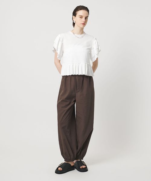 袖と裾にフリルをあしらったフェミニンな印象のカットソー。
