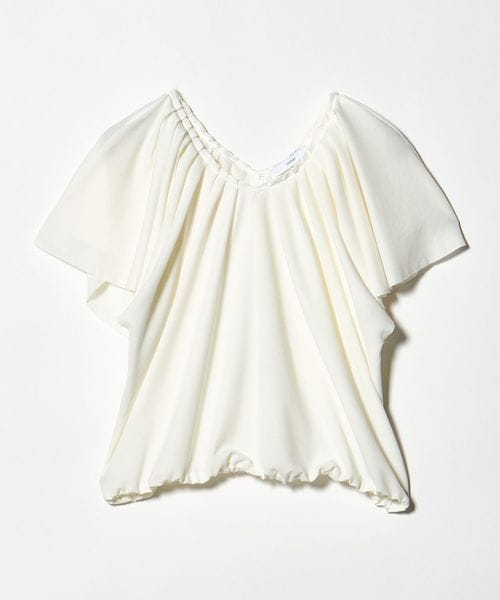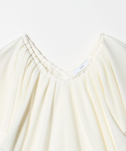 たっぷりしたドレープを入れたスリーブレスブラウス。
