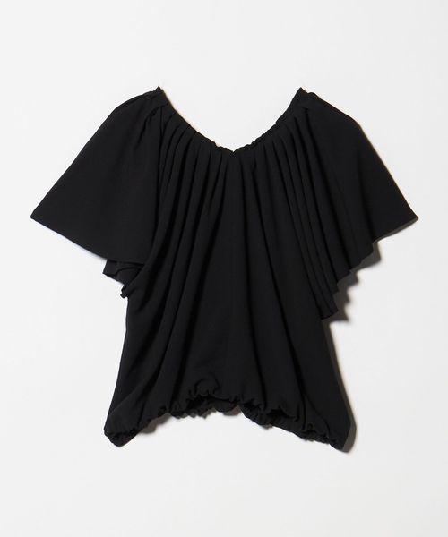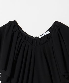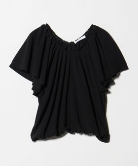 フリルデザインがフェミニンな印象のVネックブラウス。