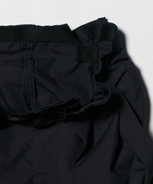 ビッグシルエットのストレートスカートをゴムでタックをとりリメイクしたようなデザインのスカート。