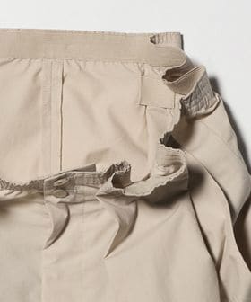 シャツをタックインしたり、コンパクトサイズのトップスをあわせるとウエストのデザインが引き立ちます。