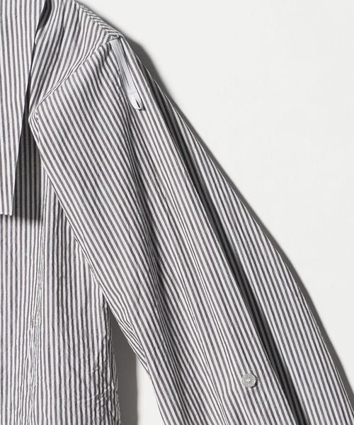 肩のタブにボタンを留めて袖丈を調節するアレンジが楽しめます。