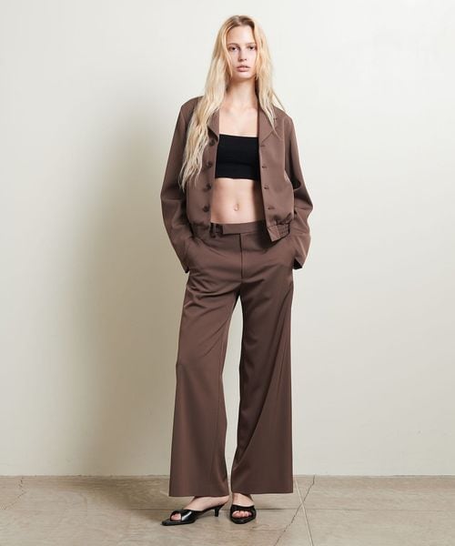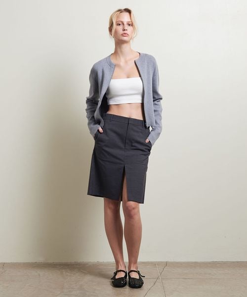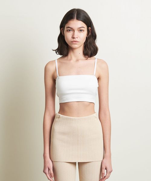 襟周りの開きが広いトップスと合わせてヘルシーな印象でコーディネートするのがおすすめ。