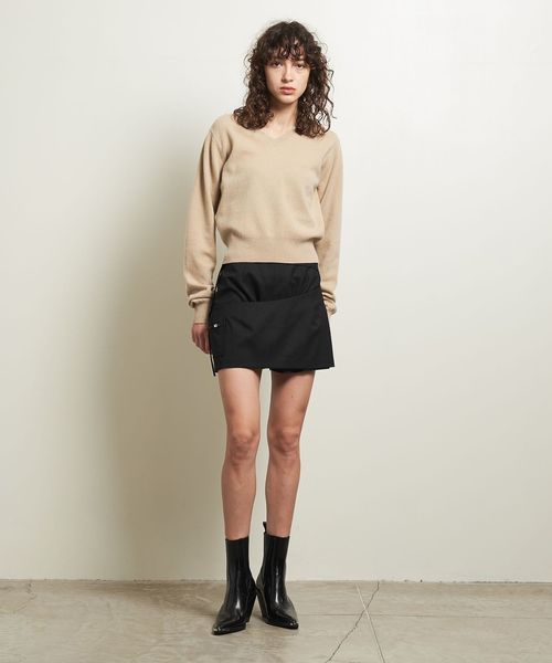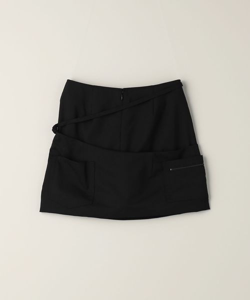 スカート部分は取り外しが可能、ポケットはファスナー付きで単行本が入る大きさになっており実用的なデザインがポイント。