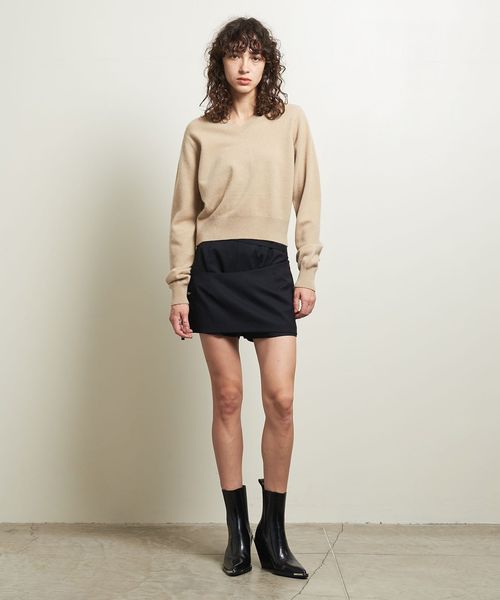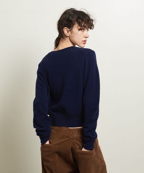 ウールベースにカシミヤ混の素材を使用した素肌でも着られる風合い。