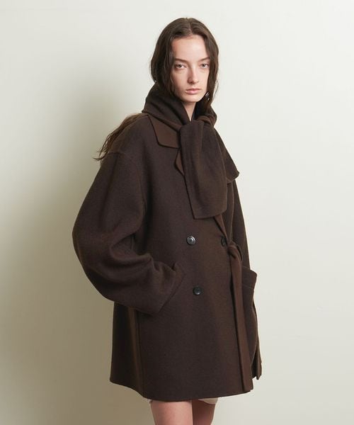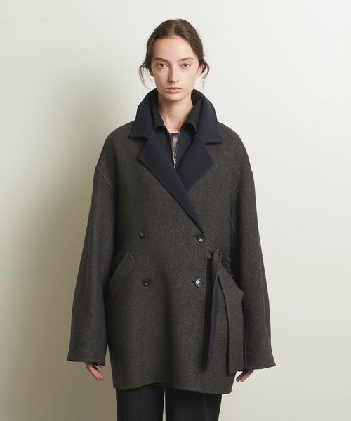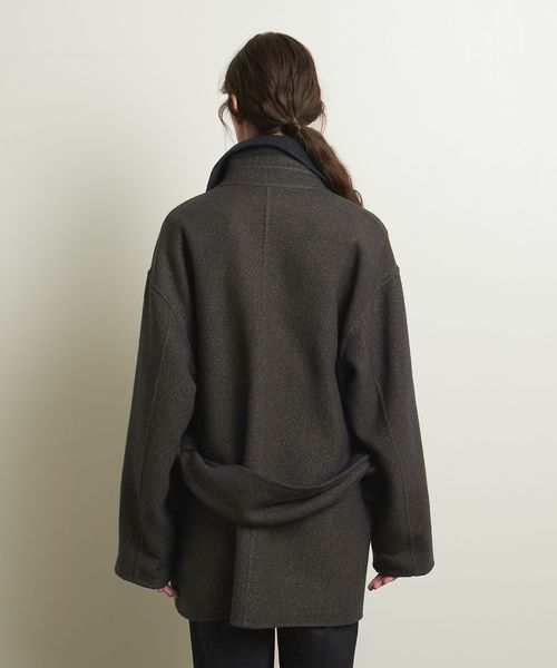 ツイードライクなオーバーサイズのジャケットコート。