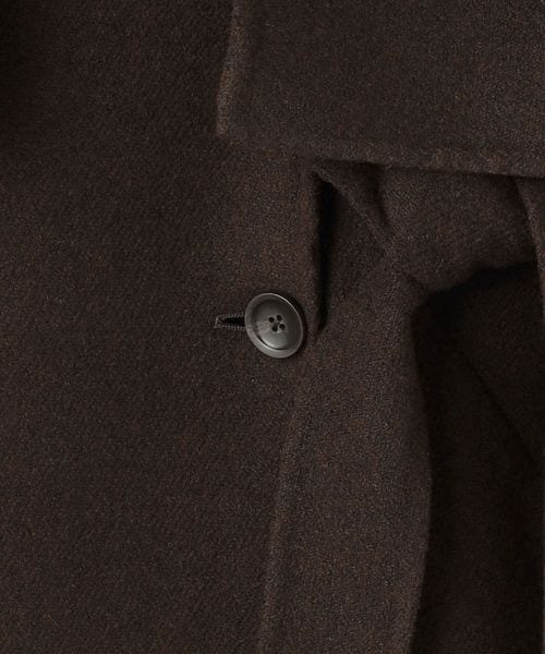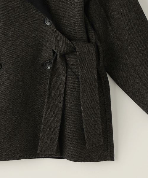 フロントはタブルボタンにセルフタイのベルトが付いた仕様で他にはないデザインが魅力。