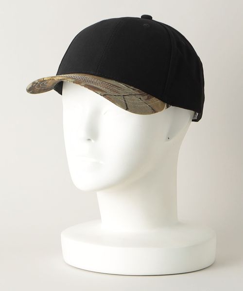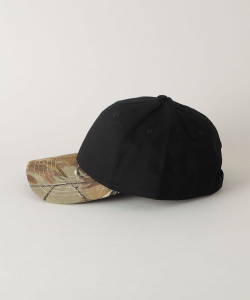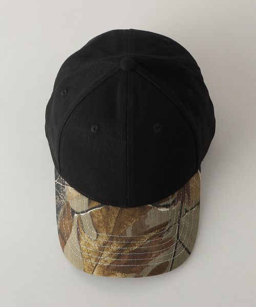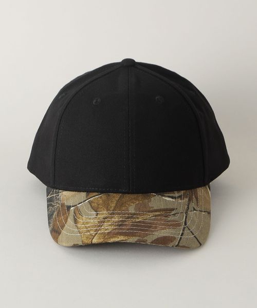 ブラック×カモフラージュ柄のコンビネーションが特徴的なベースボールキャップ。