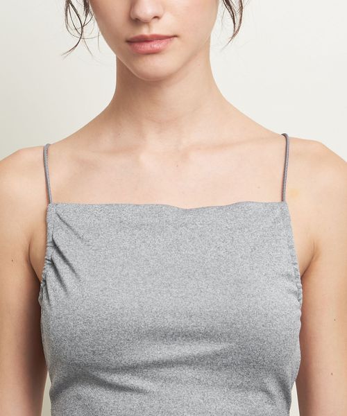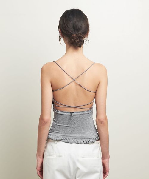 バック開きのデザインにナローコードストラップを組み合わせたデザインキャミソール。