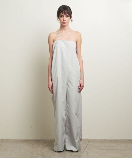 適度なハリ感が太めのパンツ幅を綺麗にみせてくれるオールインワン。