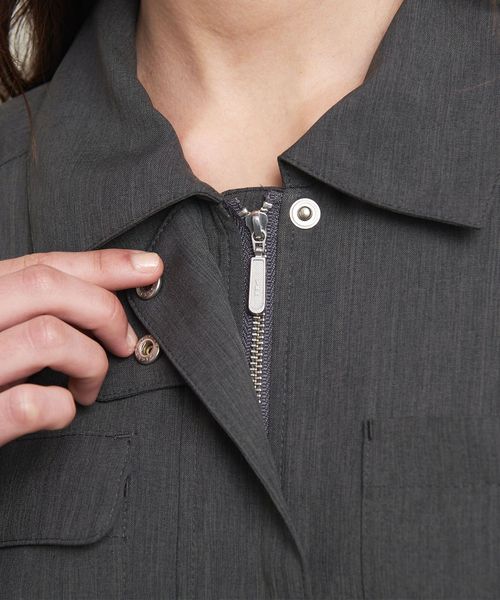 ポケットやチンストラップ、隠しジップデザインなど、古着のディテールを細かく再現したジャンプスーツ。