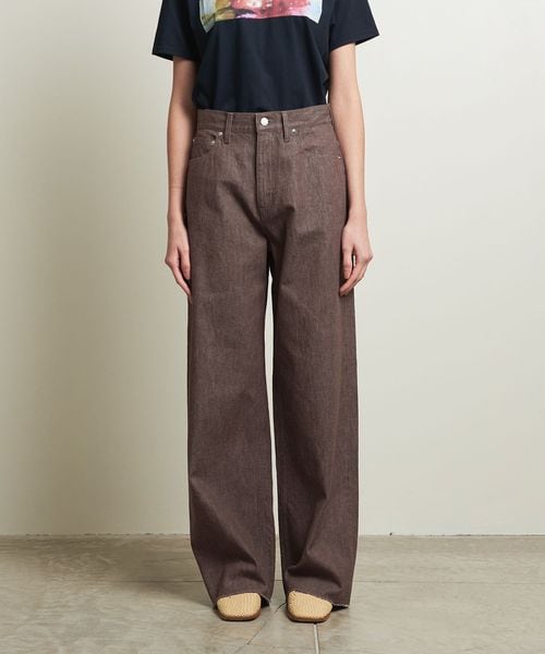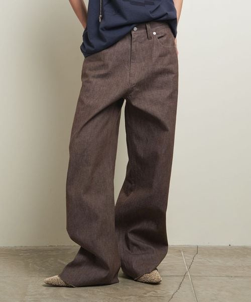生地のハリを活かしたボリュームのあるワイドシルエットデニムパンツ。