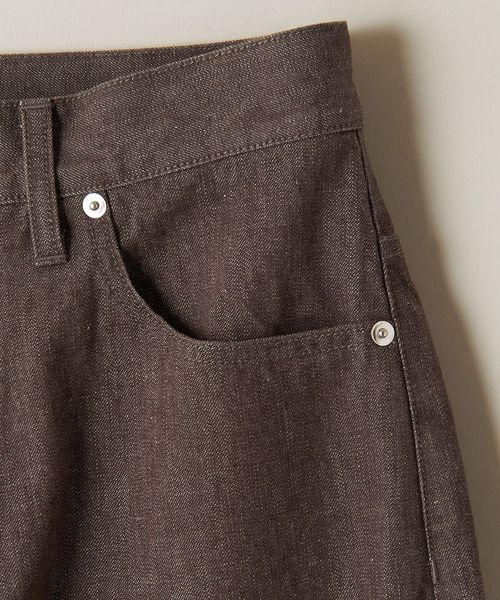 濃色で重い印象にならないよう、ムラ糸で織られたデニム生地を使用。