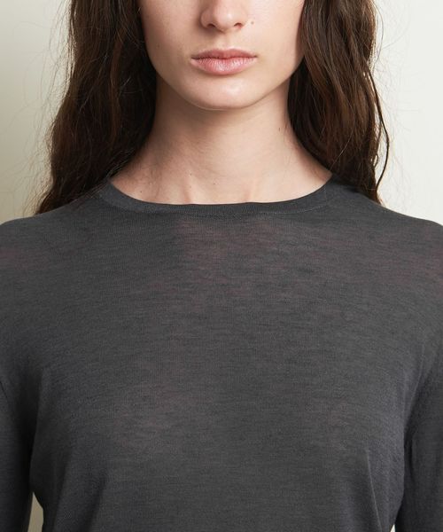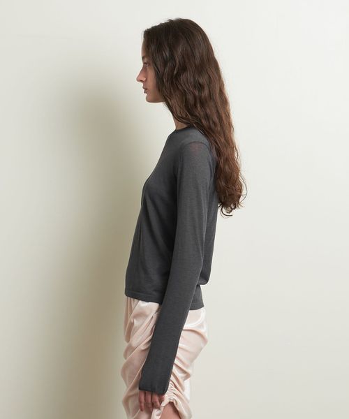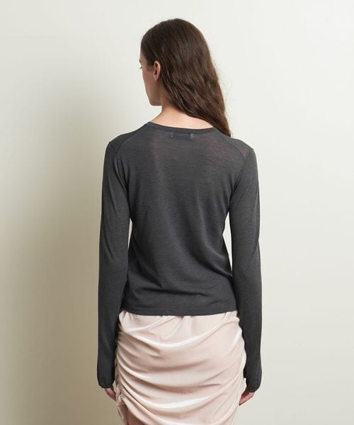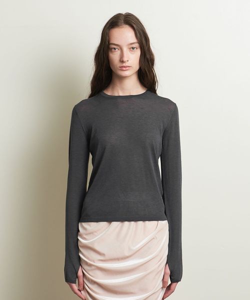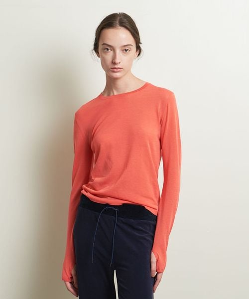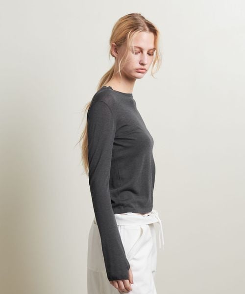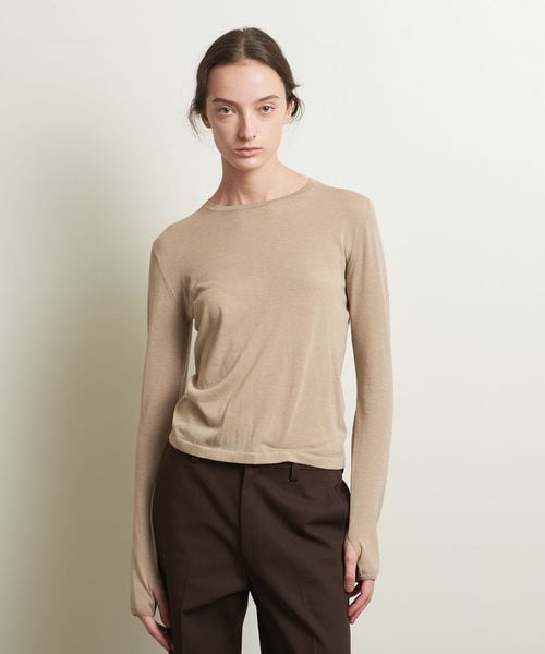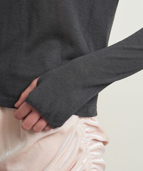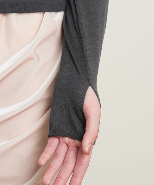 ニットながらロンT感覚で着用ができるよう、サムホールを付けカジュアルな印象に仕上げました。